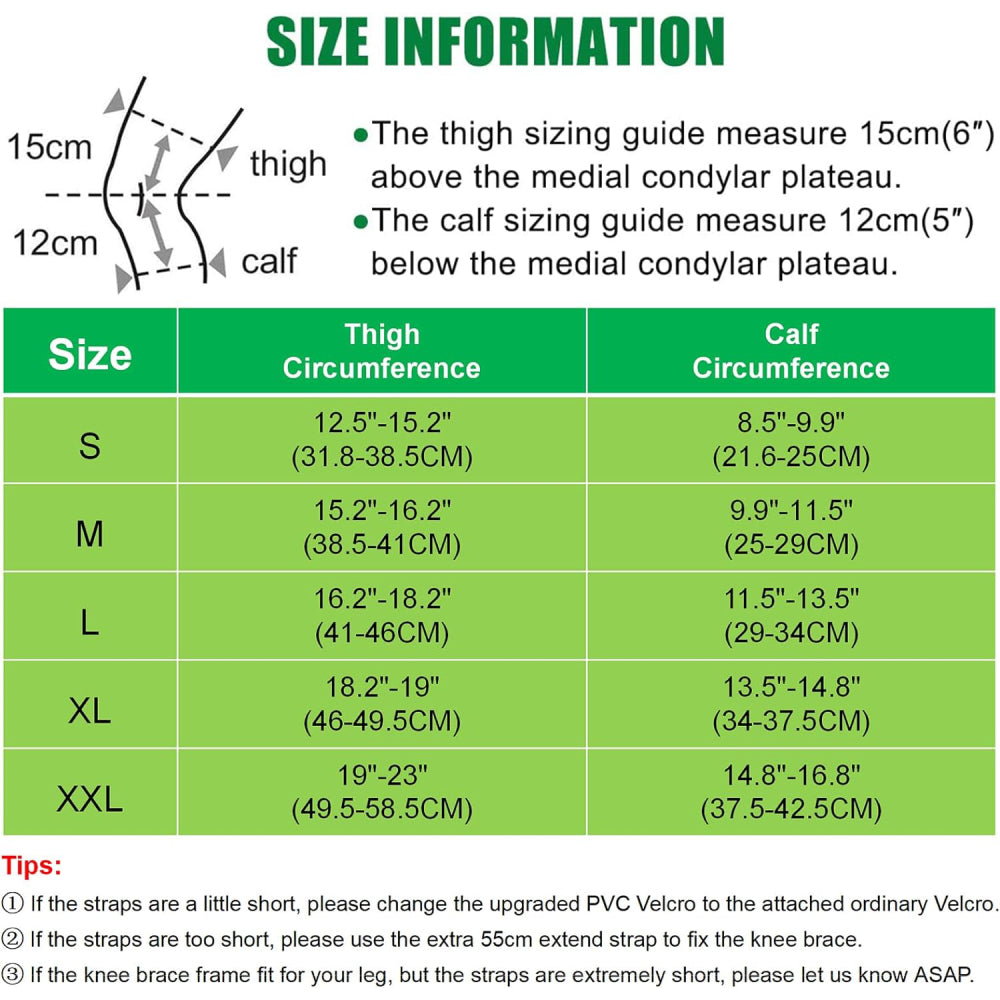 • Size Customization: Available in multiple sizes (S, M, L, XL, XXL) to fit various thigh and calf circumferences for the perfect fit.