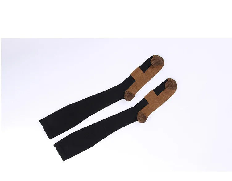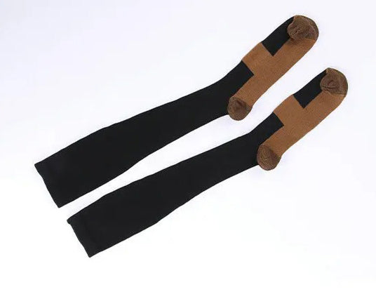 • Compression Support: Copper-infused knee-high compression socks for effective varicose vein relief and pain management.