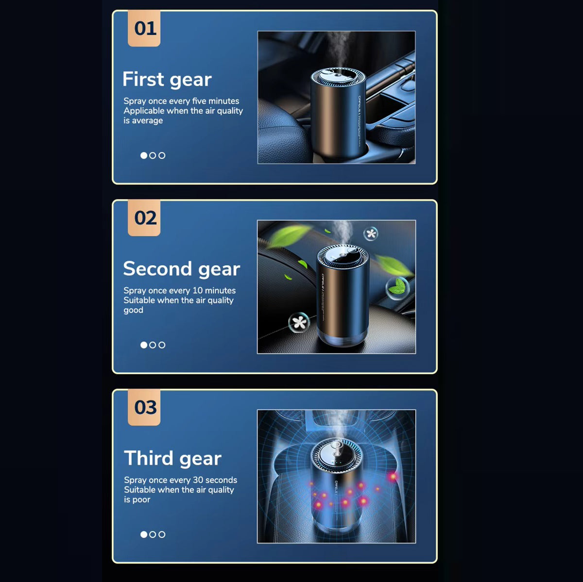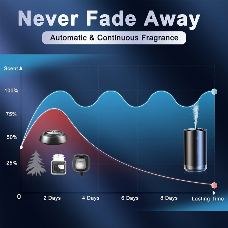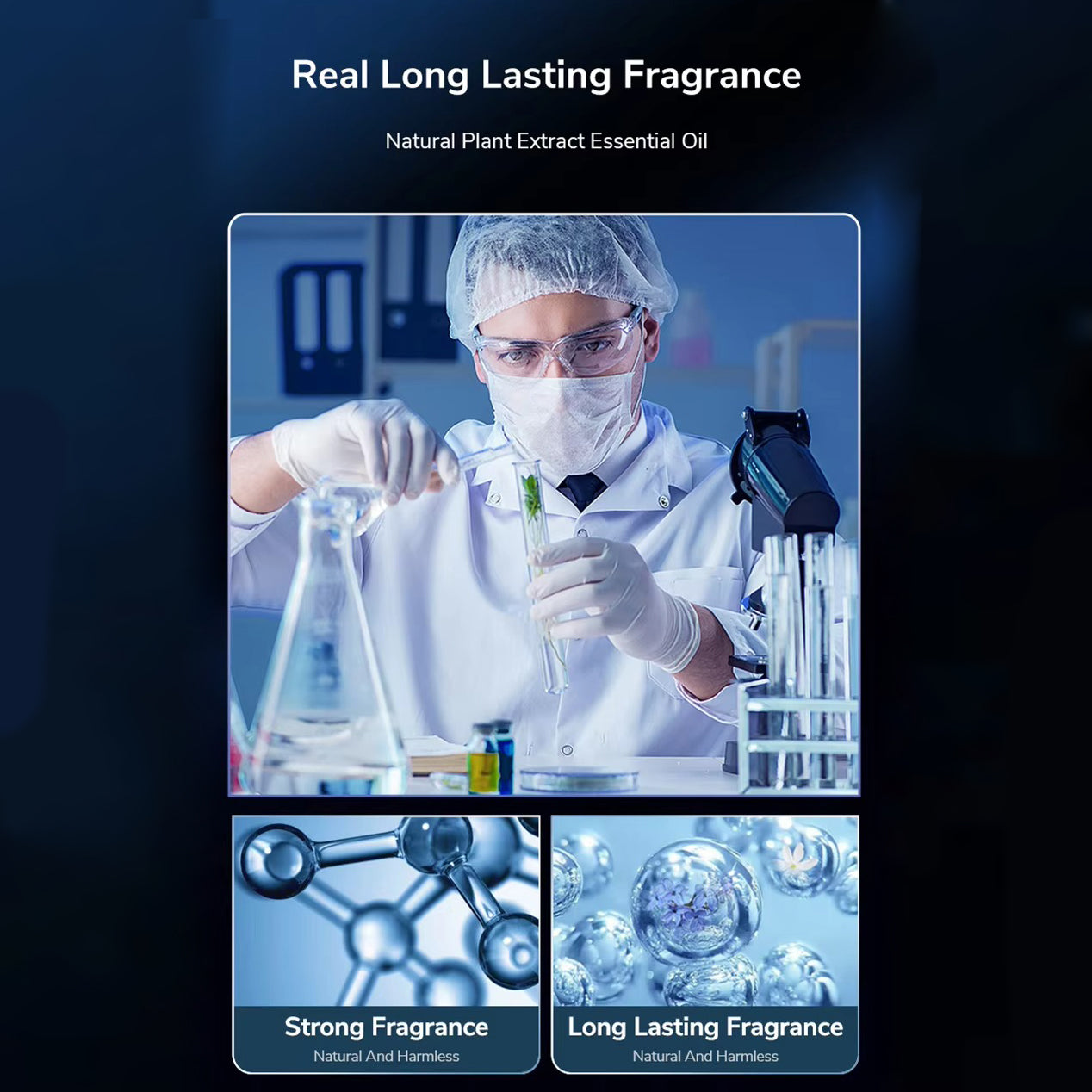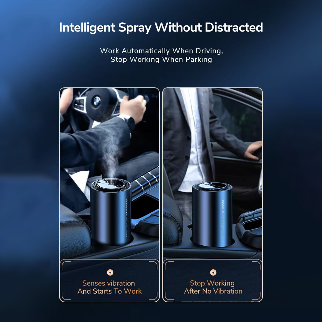 - Automatic Sensing Technology: Built-in ultrasonic sensor chip activates atomized fragrance spray automatically upon detecting vibration, ensuring a consistent aroma.
