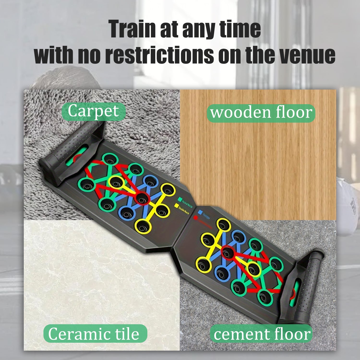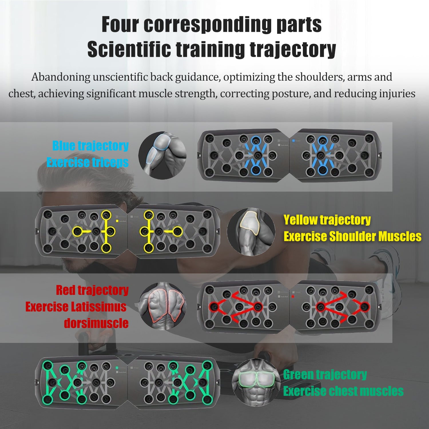 • Color-Coded Push Plates: Distinct color zones target specific muscles—chest, abs, arms, and back—for a balanced, efficient workout.