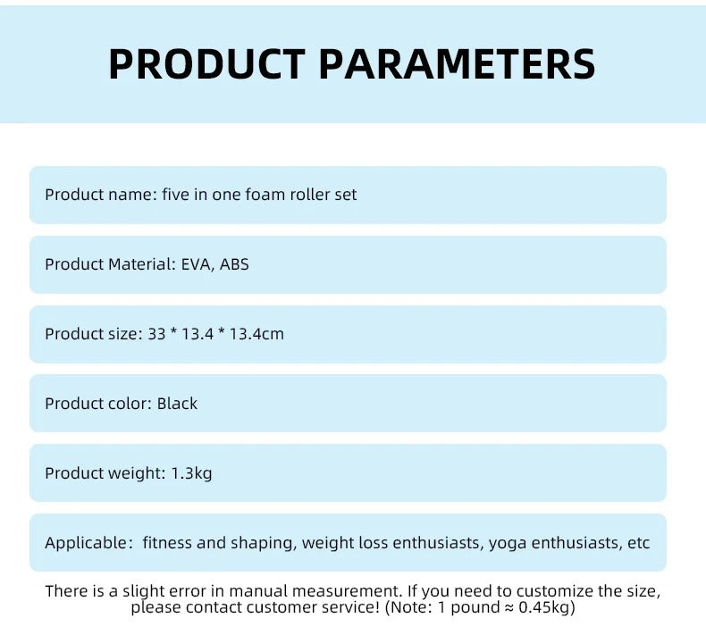 • Muscle Recovery: Relieves muscle stiffness, improves circulation, and reduces soreness after training sessions using the roller, stick, and massage balls.