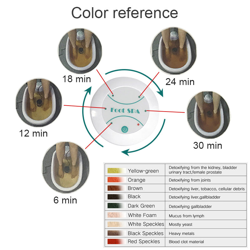 • Water Color Change: Color variations during detox indicate the presence of toxins, providing a visual representation of the process.