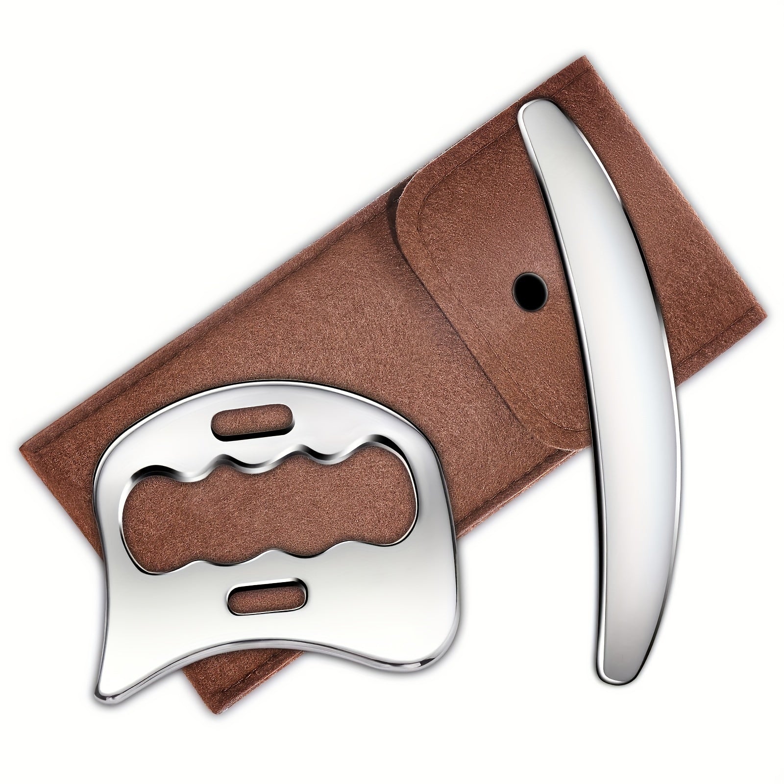 The Premium Stainless Steel Gua Sha Massage Tool Set provides a professional-grade solution for muscle pain relief, fascia restoration, and skin rejuvenation. Crafted from durable medical-grade stainless steel, this 2-piece set features S-shaped and D-shaped designs to accommodate full-body treatments. Perfect for athletes, therapists, and wellness enthusiasts, it enhances circulation, supports lymphatic drainage, and promotes relaxation. Incorporate this premium tool set into your daily self-care or therapy routine to achieve smoother, healthier, and revitalized skin while easing muscle tension naturally.