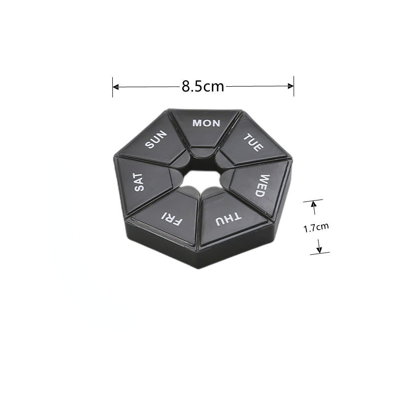 - ·Compact Size: Measuring 8.5x8.5x1.7 cm, it offers a small, lightweight solution for organizing your medicines without taking up much space.