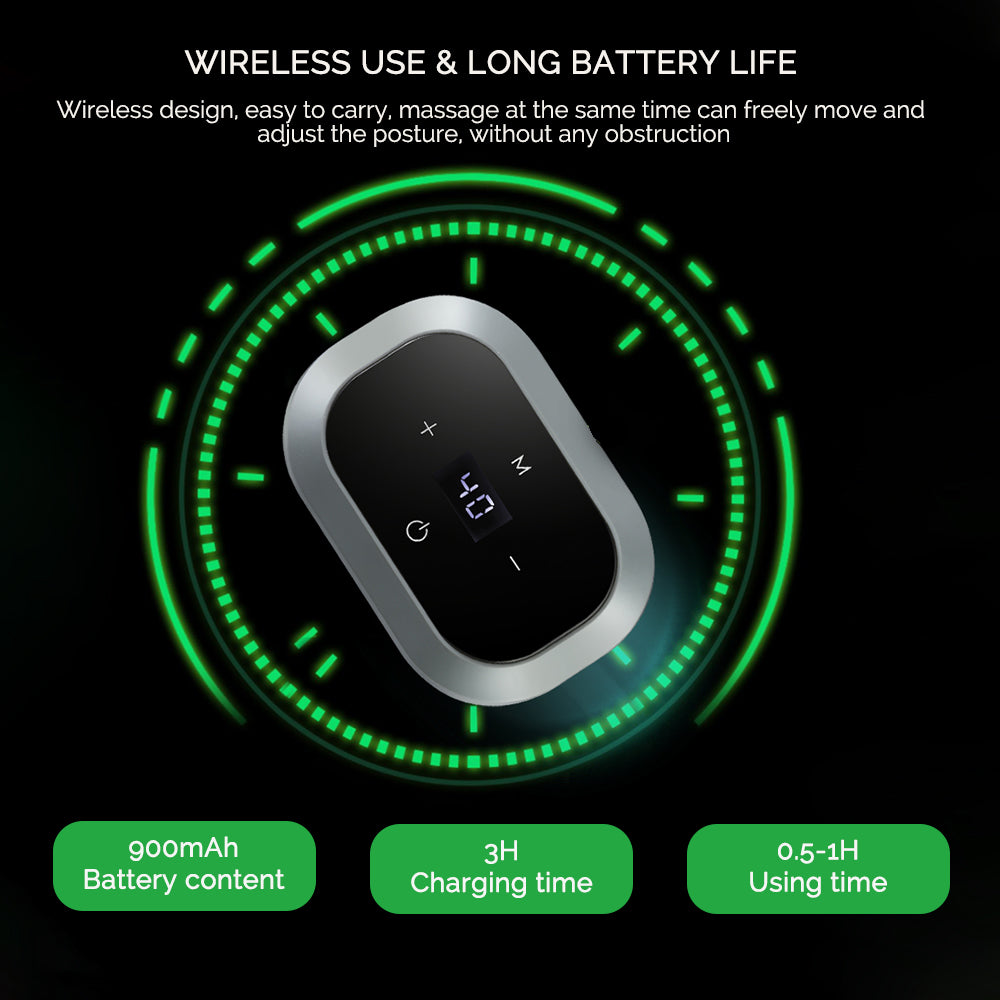Instructions: Fully charge the device before first use. Wrap the massager around your preferred area and select your desired heat and vibration settings. The device will automatically power off after 15 minutes for safety.