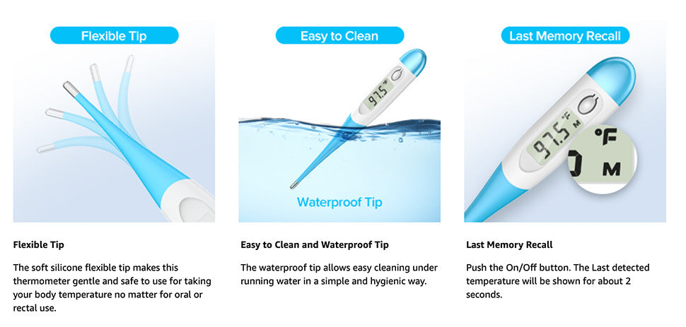 • Accurate Temperature Reading: Measures both oral and armpit temperatures with precision for reliable results.
