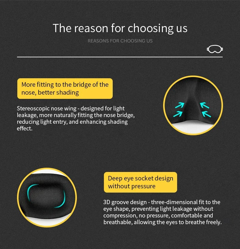 - Sleep Aid: Helps improve sleep quality by providing a dark and comfortable environment.