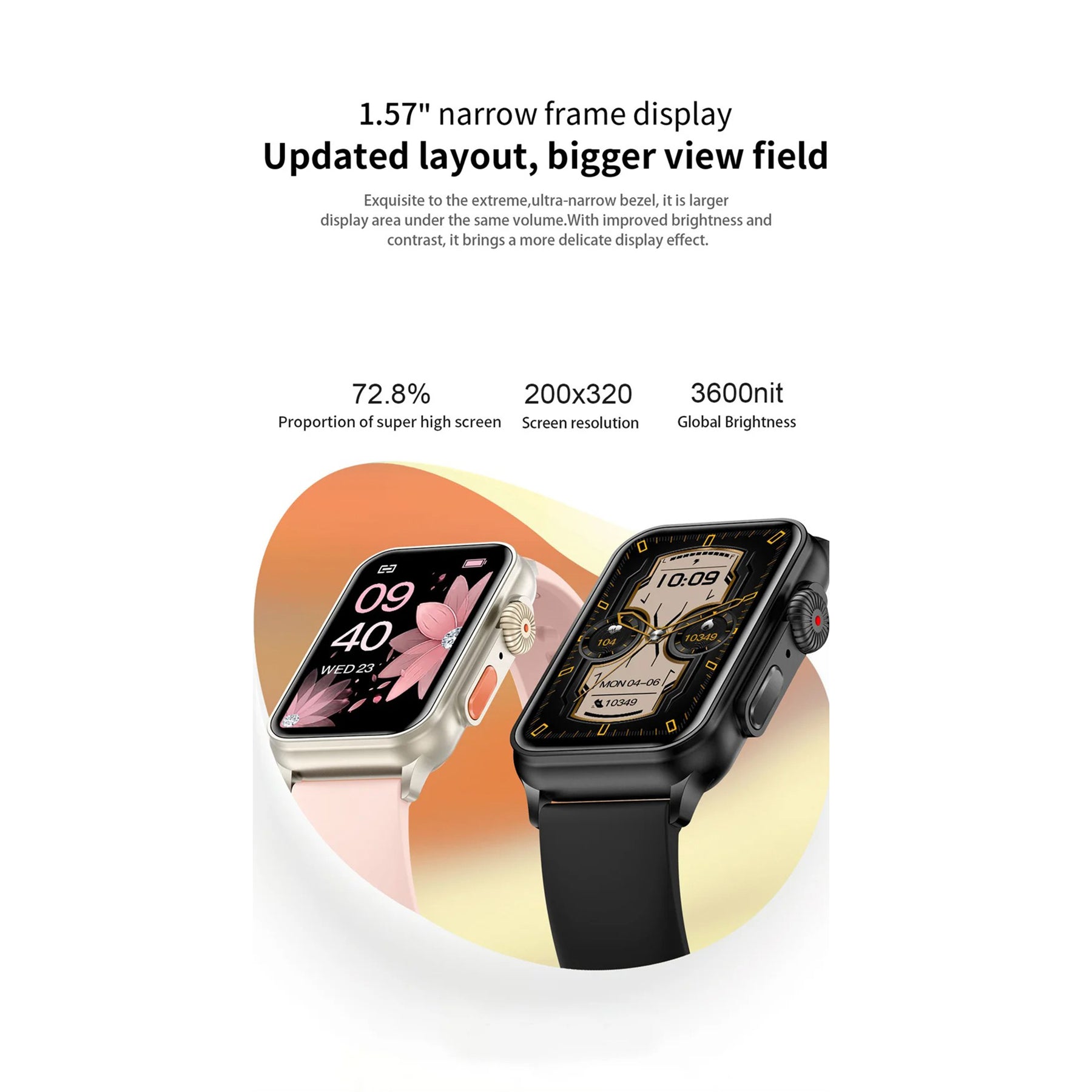 • Display: 1.57-inch HD Full Lamination Touchscreen with 200x320 resolution for sharp, vibrant, and clear visuals.