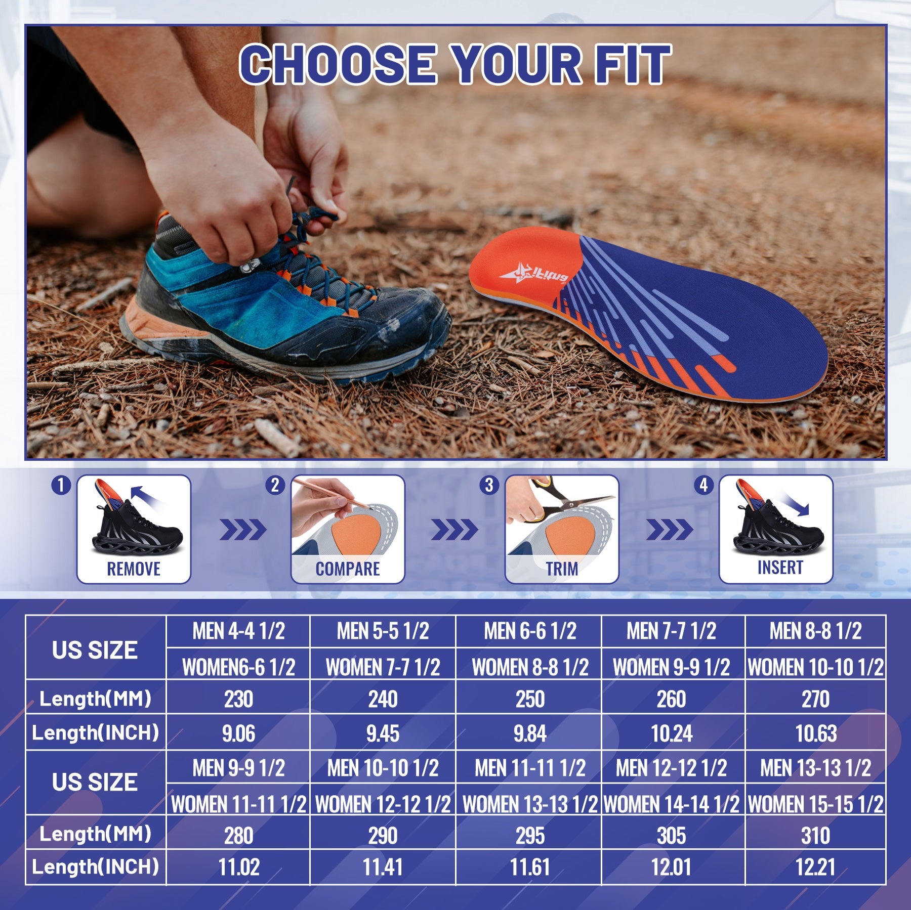 Premium High Arch Support Orthopedic Insoles for Plantar Fasciitis Relief, Cushioning Foot Inserts for Flat Feet, Deep Heel Cup, Shock Absorption for Men and Women